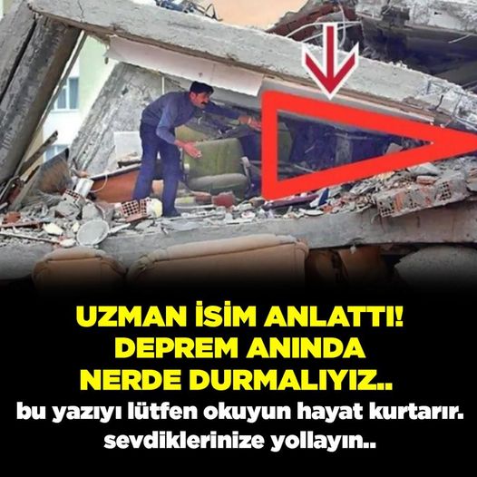 Enkazda 6 çocuğu koltuk kenarında çıkardığını belirten Şahin, genel olarak koltuk kenarı ve sabitlenmiş eşyaların yanında duran kişilerin hayatta kalma şansının olduğunu belirtti. TRT Haber’in haberine göre, enkazda gördüklerini değerlendiren uzman isimler bu eşyalar sayesinde insanların yaşam üçgeni oluşturabildiklerini ifade etti. Deprem sırasında bulunulmaması gereken noktalardan biri olarak merdiven boşlukları ve koridorları işaret ediyor. Hafsa Özcü “Apartmandaki merdiven boşlukları, asansör boşlukları ve koridorlarda bulunmamak gerekiyor” ifadelerin kullandı. Uzmanlar deprem öncesi vatandaşların ev planlaması yapması ve deprem anından kimin ne yapacağını? Nereye sığınacağını bilmesi gerektiğini belirtiyor.